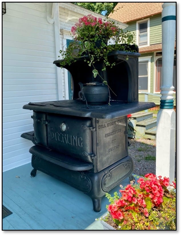 Early stoves didn’t have temperature controls. Many were the pot-bellied type, fueled by coal or wood and used for space heating as well as cooking. The cook, wanting to roast a cut of meat, would lay a fire inside the stove, and would wait until her experience said it might be at the right temperature to insert a metal or cast-iron pan. Before putting the meat into the belly of the stove, the cook had two ways to test the temperature: either toss a small handful of flour into the stove and judge the speed of the flour turning black, or thrusting a hand and quickly pulling it back—if a blister began to form, it was still too hot for the pan with the meat to go in. This situation prevailed until the first purpose-made cooking stoves came onto the market in the early 20th century. But most on the St. Lawrence continued to use the stove already there for as long as possible.