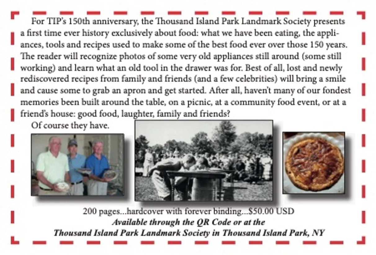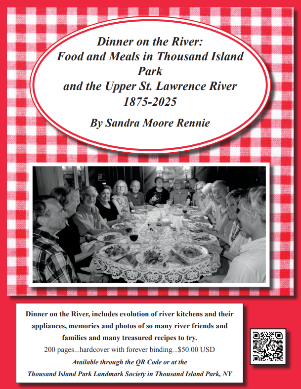 Dinner on the River: Food and Meals in Thousand Islands Park and the Upper St. Lawrence River 1875-2025 by Sandra Moore Rennie. The book is now available through the TI Park Landmark Society.