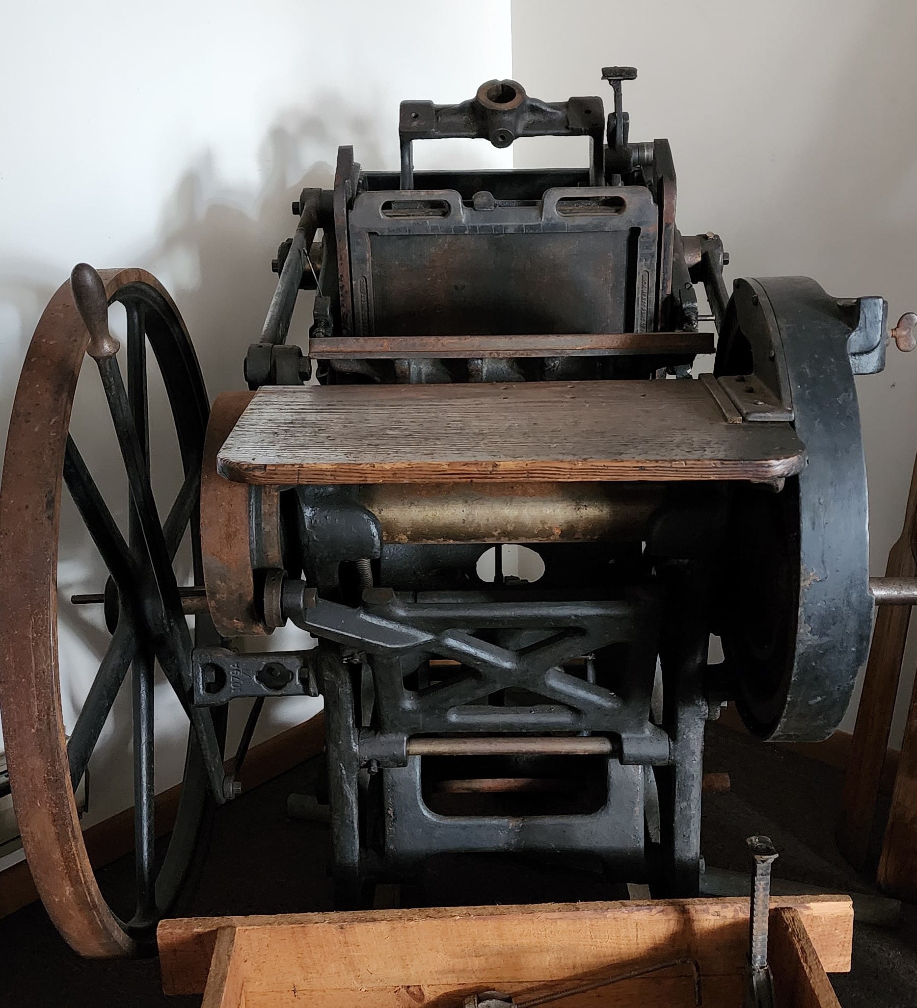 Two exhibits located in the Cape Vincent Museum. L: the Tallett Rod Winding machine; R: Eagle Press Print. [Photographs courtesy of the Cape Vincent Historical Museum.]