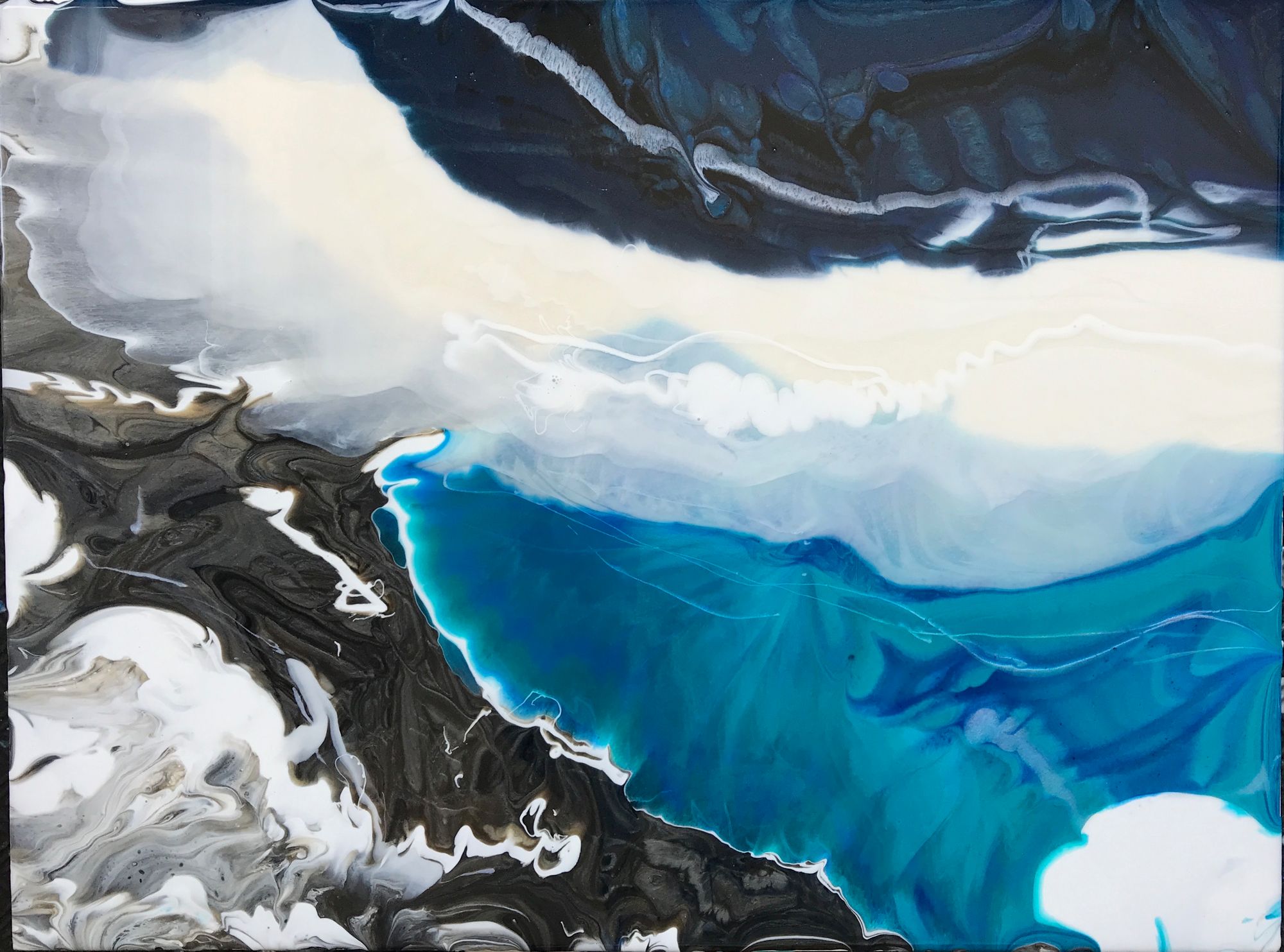 Margaret McLauchlan was born in Baker Lake, Nunavut and spent her childhood in small remote communities all over the Canadian Arctic. Although she has lived in Kingston for many years, she continues to travel "north of ordinary” as often as possible. Those wide open spaces where you can see forever are exquisitely beautiful and haunt her soul. She is playing with the new Tri-Art line of liquid glass acrylic paints. and loves the depth, the layering and movement that these paints produce. She paints on the floor so she is looking at the support from above, as if she is in a small plane flying over the masses of waterways and ice and tundra in the north. All her paintings are imaginary abstract works anchored with ice and shades of blue.