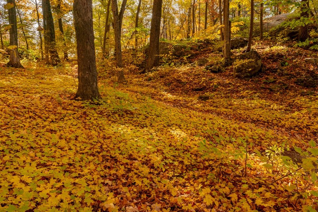 One reason I love this time of year is that the campgrounds are closed for the season and devoid of people. I encountered not a single soul as I explored the area, reveling in the sunshine and the abundance of yellow and gold hues. I happened upon this spot, where the forest floor was blanketed in yellow maple seedlings and fallen leaves, bathed in warm sunlight streaming through the trees. After patiently deciding on where to set my tripod (the most important decision) I set about photographing the scene.
