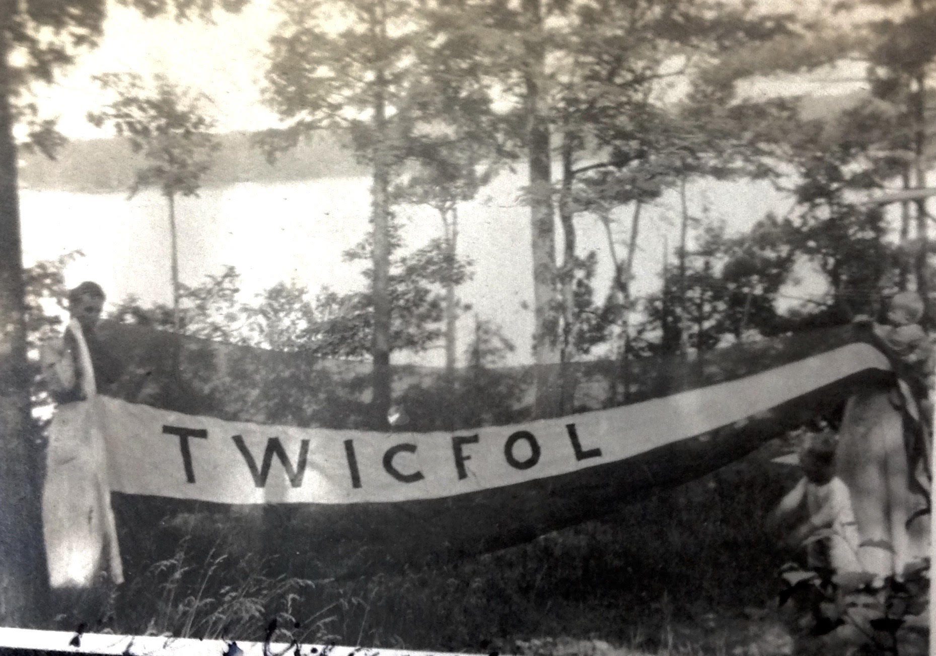 Edmund and Vera welcomed their guests with their TWICFOL banner. (“Twicfol” stood for “Twichell’s Folly”.)