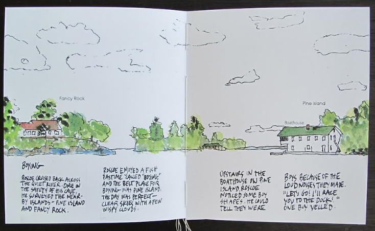 Sarah Bodine is a writer, editor, designer and book artist. She spent the summers of her childhood at her great-grandfather’s house, known as Cliff Cottage, on the Ontario side of the St Lawrence River near Rockport. The three Keats children were her cousins, and she often ran an outboard across the Canadian channel to spend the night on Pine Island. John Keats, fondly known as JK, made Roscoe Fish the main character in his bedtime stories, which were loved by all the children. To this day, the next island generation is forever looking for Roscoe under the boats in the slip.