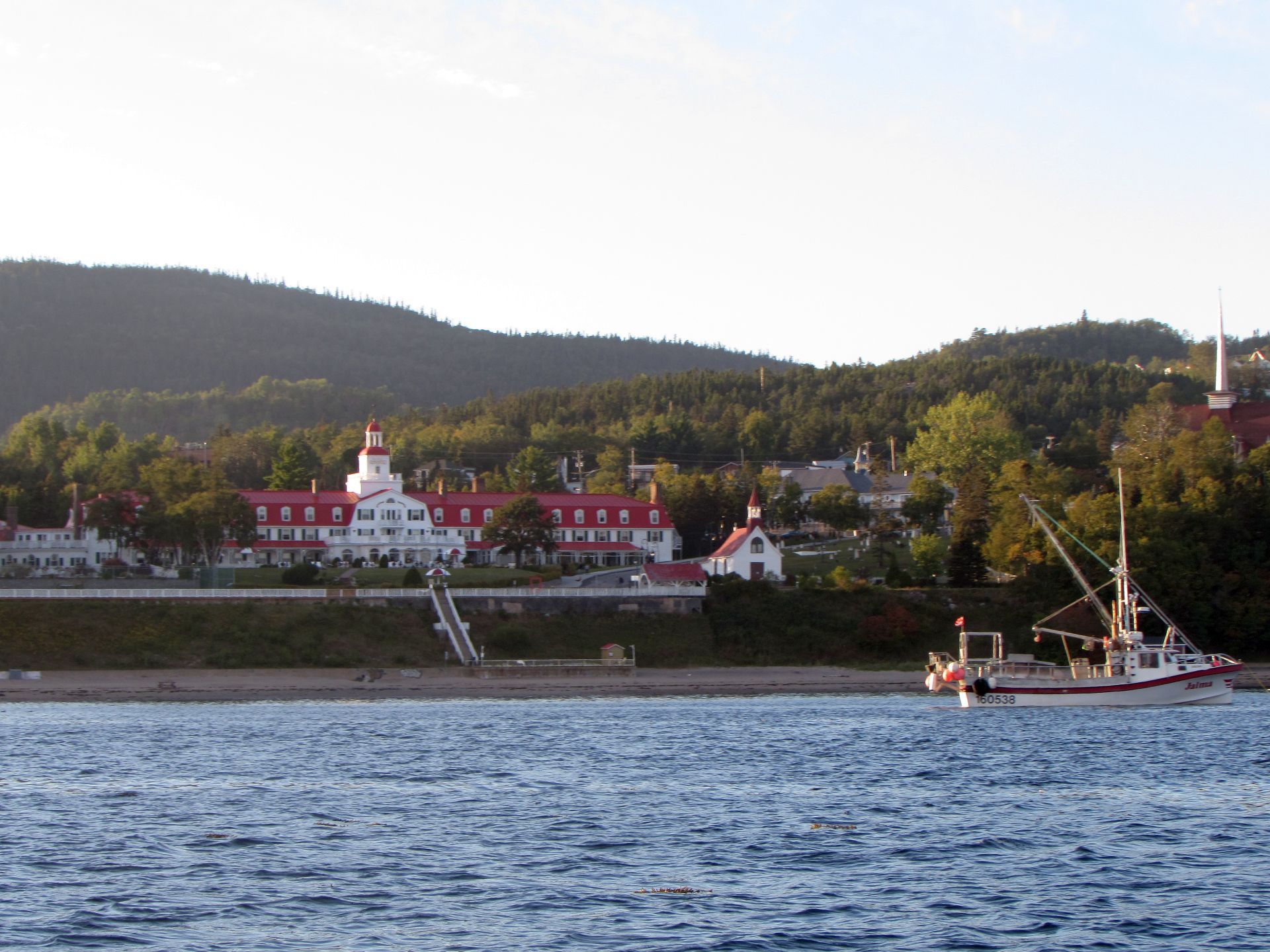 The tide started rolling in, and waves with annoyingly short intervals accompanied us for a short while until the gleaming sight of the ferry between Tadoussac and Baie-Sainte-Catherine manifested itself like a fata morgana at the end of the ever-widening fjord. Tadoussac is neatly tucked upon a little plateau; most prominently greeting you is the Hotel, a sight you may recall from its standing in the 1984 Hotel New Hampshire movie. The change in salinity and heavy current (7 knots!) made for some interesting sailing; it was harder to get on plane and we got tossed around a bit. With a quarter of the tank of gas left, we arrived back at the ramp. It was much easier to disembark, thanks to the high tide.