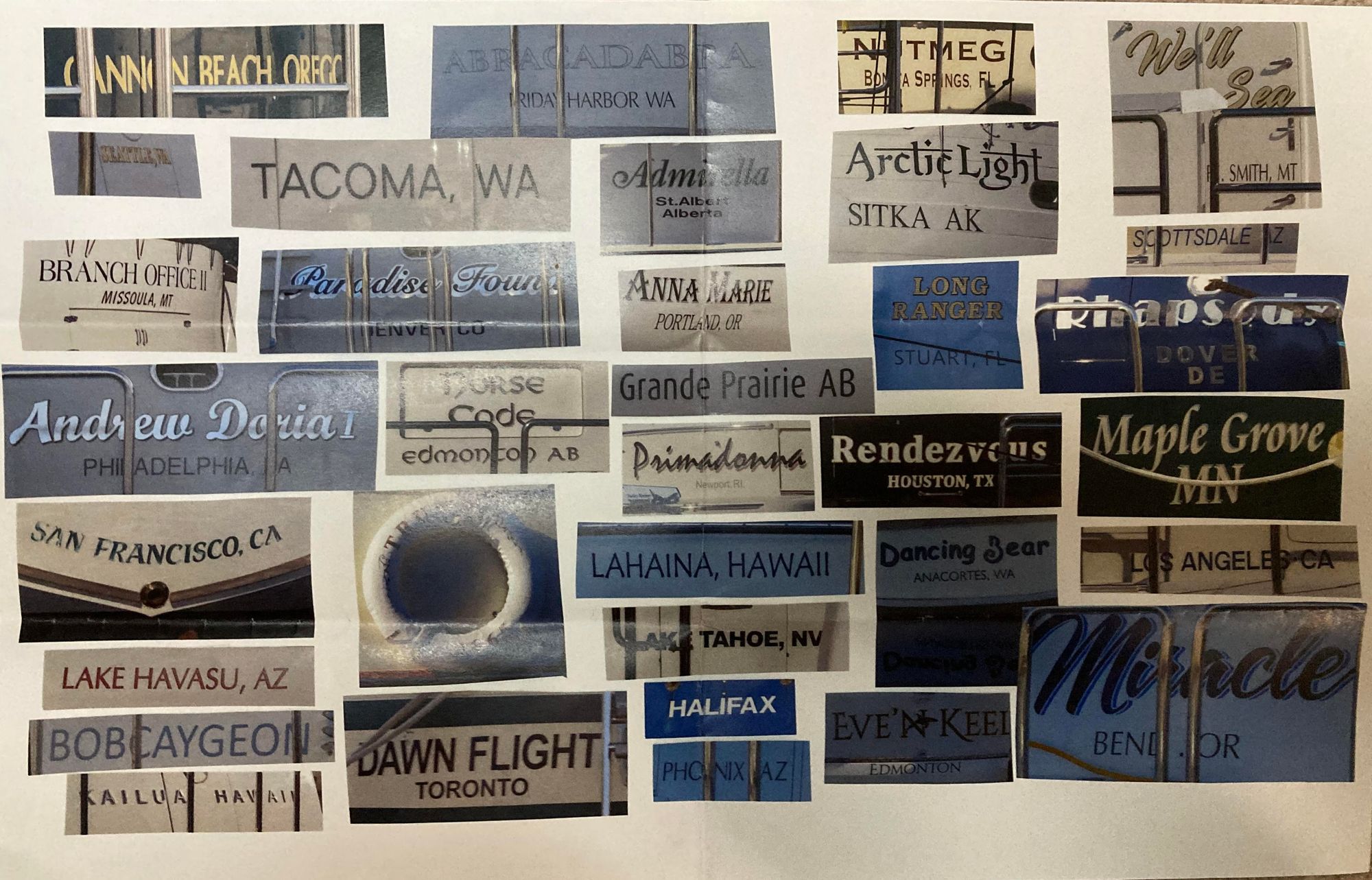 One day at the end of October, I ventured to two marinas and took photographs of boat names and home ports. I was amazed at the number of boats with US registrations. Of course, most had no sailors this summer with the border closed, but suffice to say that they come from everywhere.