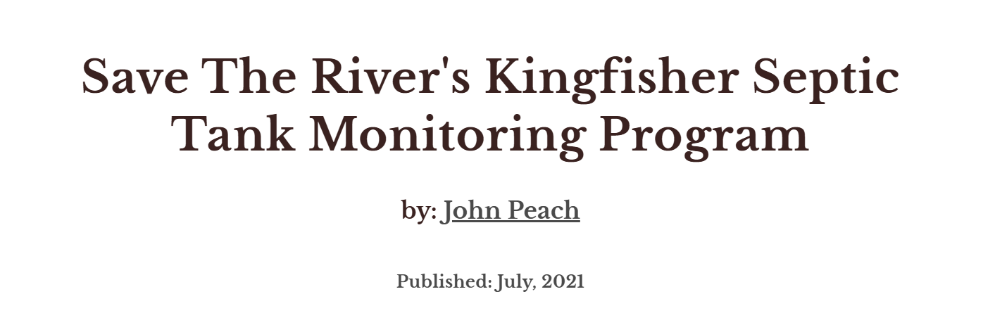 Save the River's March '26 newsletter sent best wishes to Ann Ward on her 100th birthday this month. Over the years, this editor and many River people have been fortunate to serve on boards and committees with Ann. Certainly, a lady who loves the River, and rather than sitting back and watching, Ann and her husband, Sherman, stepped in and contributed immensely. In July 2021, John Peach, then Executive Director of STR, wrote a TI Life article, Save The River's Kingfisher Septic Tank Monitoring Program. There he tells the amusing tale of Ann's experience as one of the first testing properties to see if her septic system was working properly!