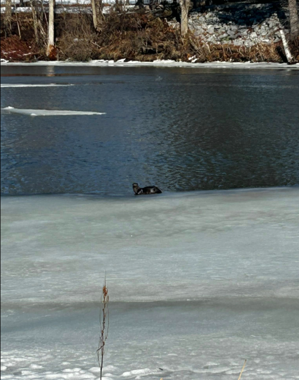 L: Allie Engle Warfel, shared her photo saying, "Spotted yesterday morning (March 6) in front of Linda Island"; R: Carrie Tedford posted on the Gananoque Bulletin Board and Community Watch Facebook page: "Some fun happening by the dog park." Yes, our otter friend likes the warmer weather too. March 8, 2026.