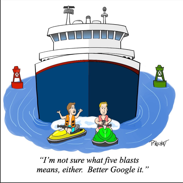 Last month I introduced Paul Reichert, our Thousand Islands Cartoonist... And I am pleased to share his smile of the month - especially as the ships are going back and forth and we need to take care!