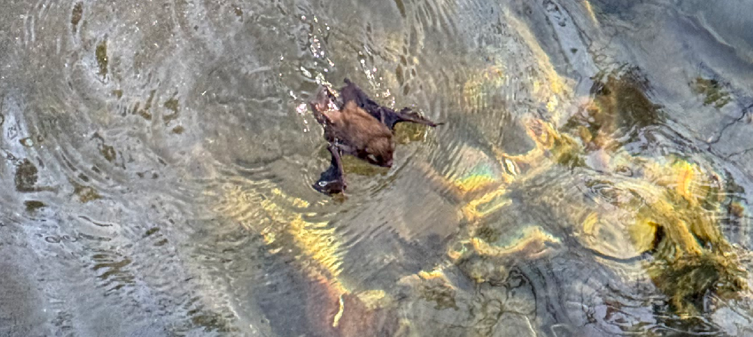 Arriving at a neighbour's boathouse, ready to have a quick check after the winter, our family disturbed a bat. Not only did they scare it, but the bat scared our family. However, the drama did not last long, as they realized the bat had fallen into the water. The conversation quickly shifted to, "Do bats swim?" The results proved they do, and not only was the bat quite content with its journey to swim under the dock, but someone also happened to catch a photograph.