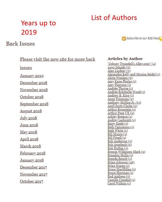 3. Once you have the long list of issues – on the left side, look on the right side and you will see an even longer list of authors. (Lynn E. McElfresh (119) articles on the Old site… Yes, she has written 119 articles... heavens that is some wonderful author.)