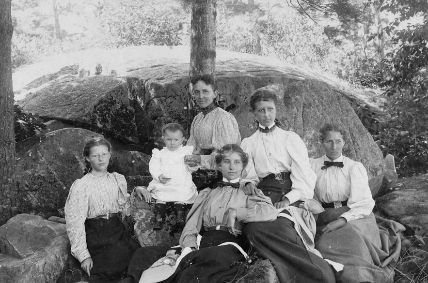 But the Clement sisters weren’t the first educated women on Grenell; the Griswold sisters were the first. Adelia and Emily Griswold built the cottage Mont Roche, currently known as Weonavu, in 1882. Adelia was the older of the two and always of frail health. Emily was the one who attended Mount Holyoke Female Seminary in Massachusetts before rounding out her education in the French language at a convent in Quebec. Emily tutored French to children of well-to-do families but also ran a small school for girls from her home in Adams, New York. After their father died, the sisters used their inheritance to build a lovely cottage high on the rocks on Grenell’s south shore.