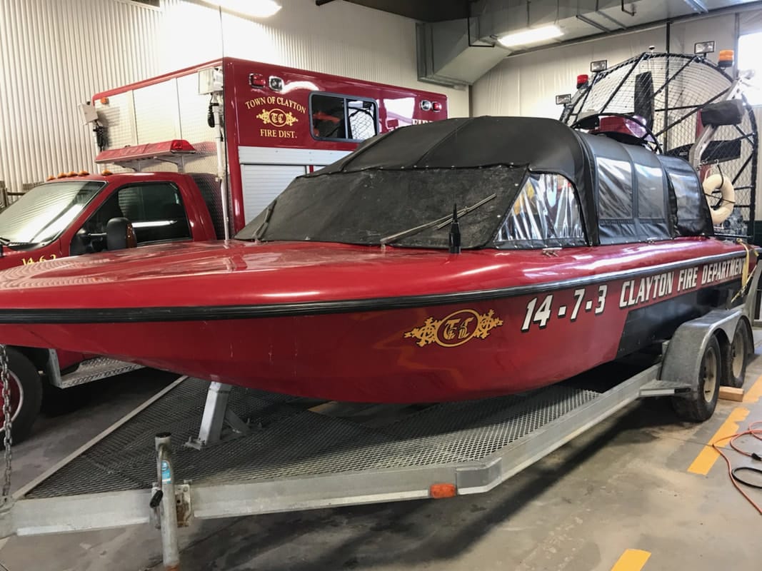 We know that fire has been the long-time enemy of island hotels and cottages on the St. Lawrence River. So therefore, it is fitting that the village of Clayton invested in a high-speed fire-boat to combat the threat of fire that can claim our heritage. In winter, when thick ice is present on the St. Lawrence River, Last Chance is limited to lending aid. So, the Clayton Fire Department has an iceboat that can travel over the frozen River to help protect residents and property.