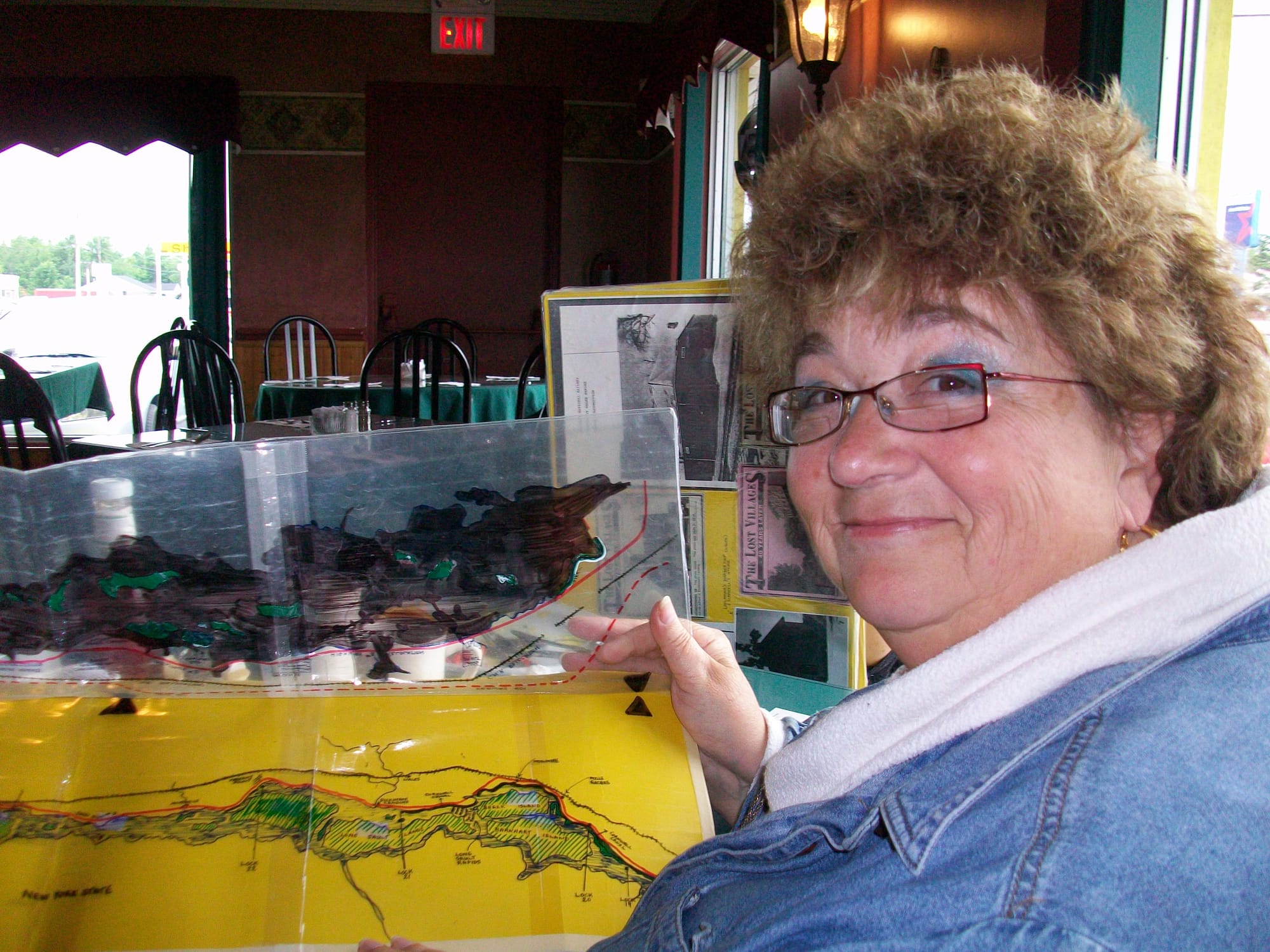 Jim Brownell, then president of the Lost Villages Historical Society, asked if Alguire could expand her student trips to include a bus tour for tourists and members of the society. Teaming with bus driver Blythe Watson, Alguire soon found herself doing eight four hour tours a summer from July to the end of October, passing near the lost villages of Mille Roches, her former home, Moulinette, Dickenson’s Landing, Wales, Farran’s Point and Aultsville. Every tour was soon sold out. That was fifteen years ago. A favourite story she likes to tell is how nervous you were to swim in the ‘new lake’ after the flooding. “If anything touched your leg while swimming,” she says, and then stops. “What do you think it is?!”