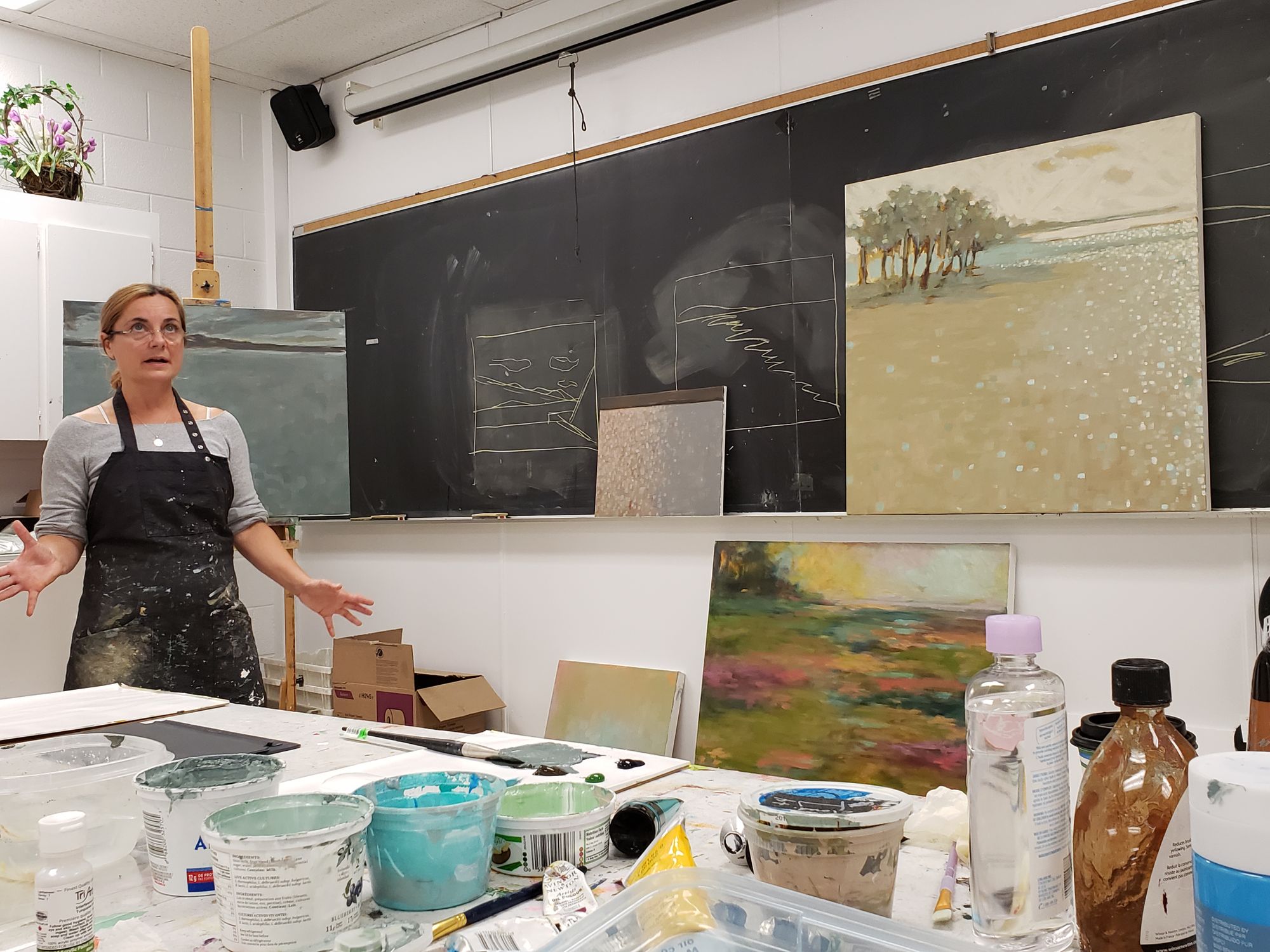 I recently had the chance to take a workshop with Lisa Free, as part of the 1000 Islands Summer School of the Arts. Many local painters signed-up for this ‘Sold- Out’ 3-day opportunity, and we were rewarded with a great experience. Lisa shared her palette, her techniques and tricks of the trade very generously, with 25 eager students at the Brockville campus of St. Lawrence College.