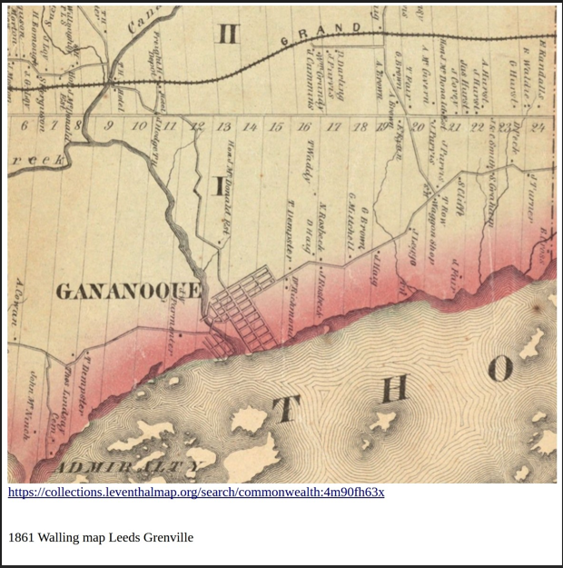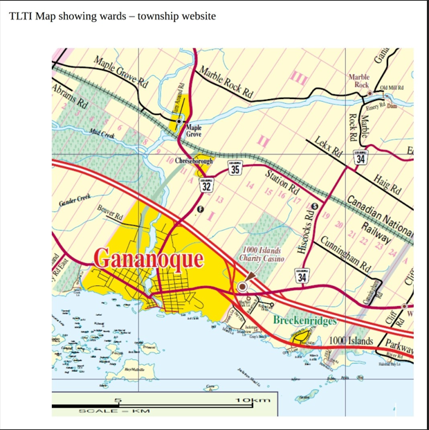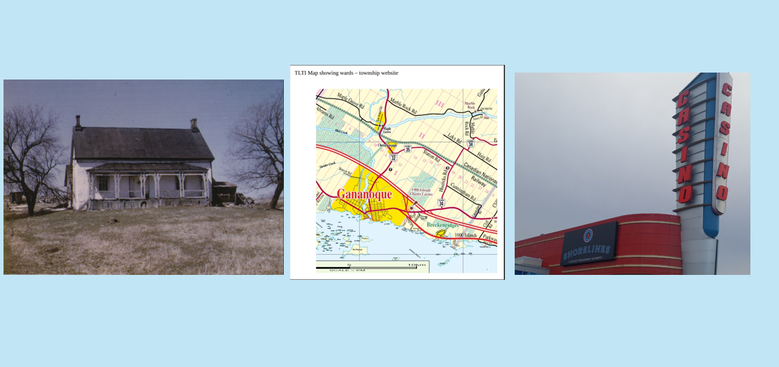 All four voted Yes, and the OLGC eventually chose this site, within the Township of Leeds and the Thousand Islands, but on the outskirts of Gananoque, within an easy drive of Kingston, and also close to the 1000 Islands Bridge to attract American gamblers. The site appears to be made up mainly of a section of George Brown's farm on Lot 18, but there is also a triangle on the west from George Mitchell's farm (part of Lot 17), and another on the east side in Lot 19, which had originally belonged to John Haig.