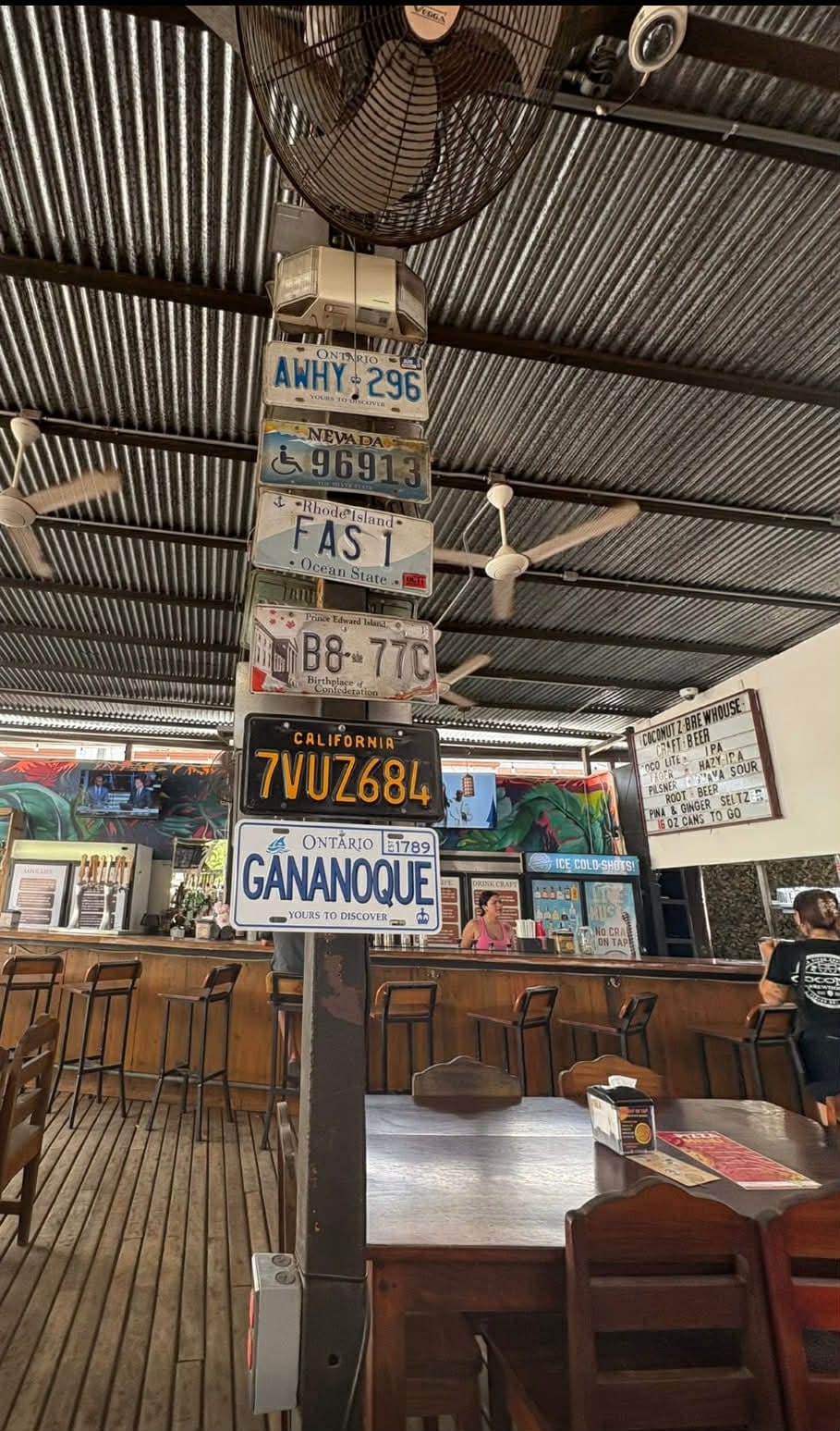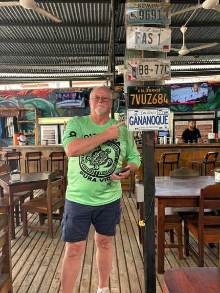 In our little Town of Gananoque, you just don’t go through without stopping at Robeson’s General Store. For the past five years we have been spending winters in Costa Rica. We frequent a bar/restaurant called Coconutz. It is filled with licence plates from all over the world.