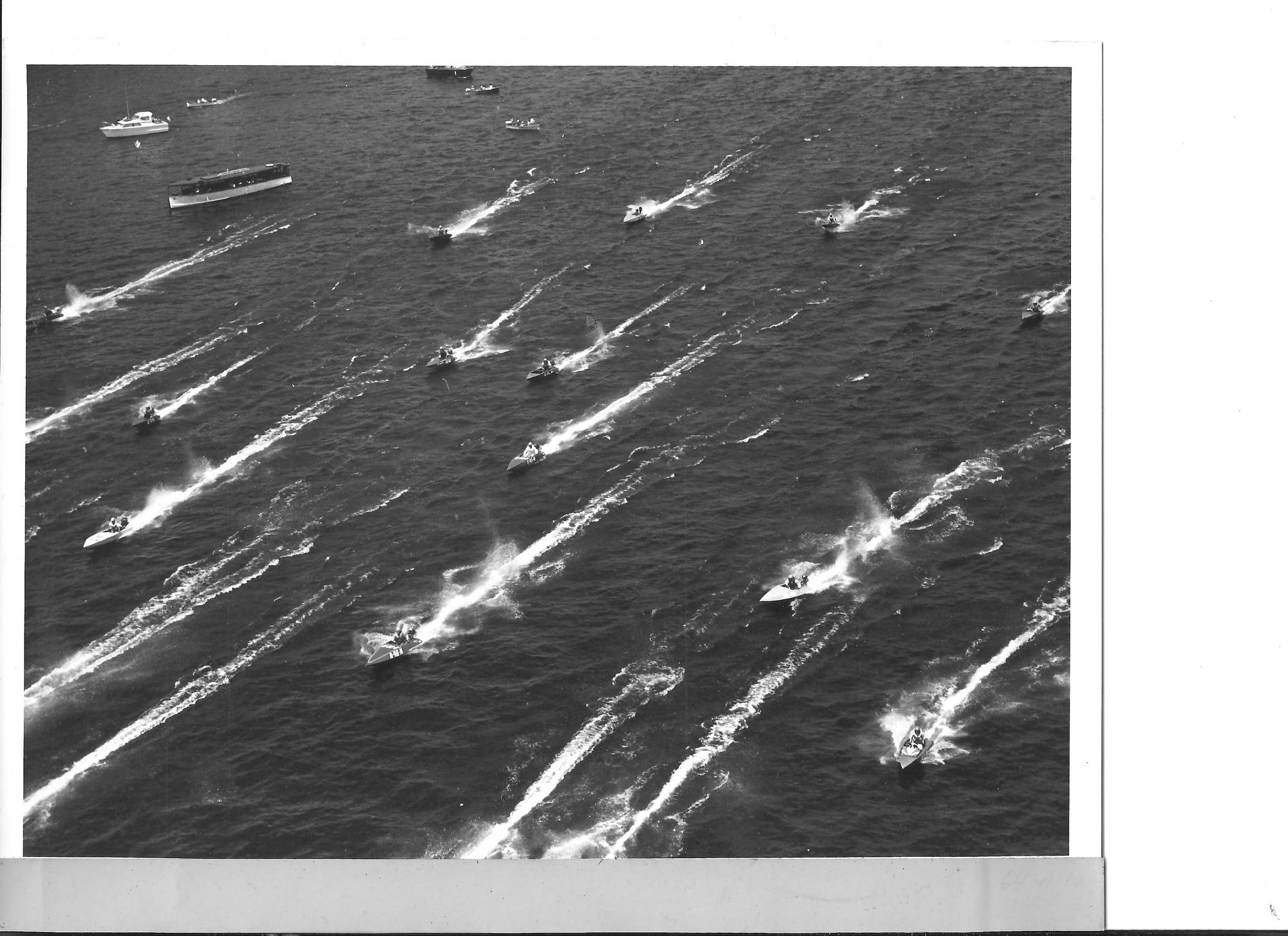1949 saw the introduction of stock outboards to the summer-long regatta season. Split into six classes according to engine and hull size, these “family” boats opened the field to prospective competitors from all over the Northeast. As their popularity grew, drivers were known to travel from distances as far as the Pacific Coast and Newfoundland, Canada.