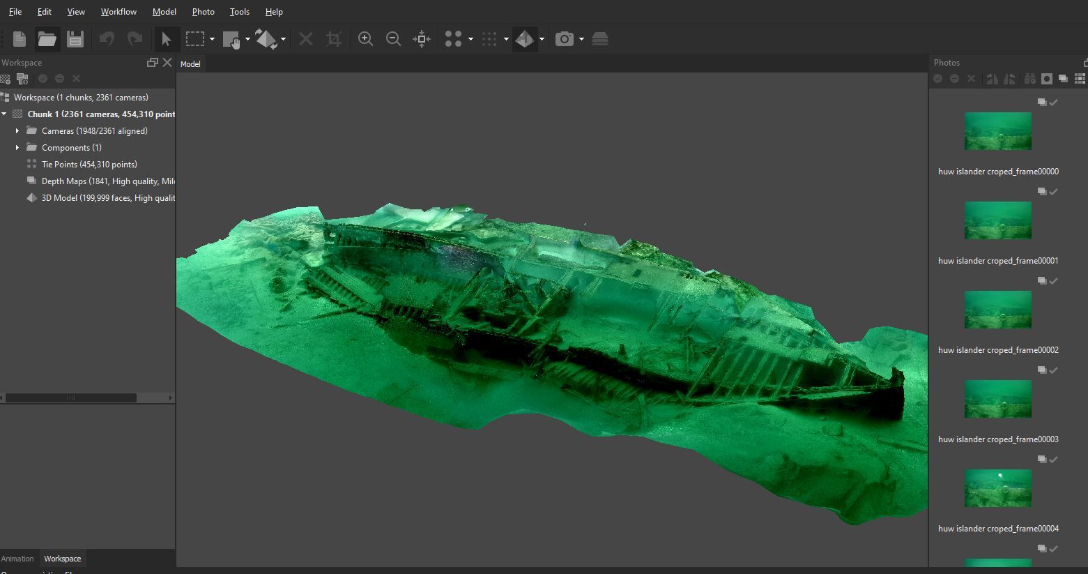 After recording, the Hunts gave the video to the St. Lawrence River Historical Foundation (SRHF). SRHF produced the desired 3D image using a process called Photogrammetry. This process takes the thousands of images captured by a video and analyzes them in order to map out the targeted object in three-dimensional space. The 3D model produced is essentially a mathematical representation of the shipwreck. SRHF made the model available online and now the public can experience the visual 3D reconstruction of the Islander at https://www.ti3ds.com/p/islander.html . Models such as this are allowing people to view and explore shipwrecks from anywhere in the world that has internet access.