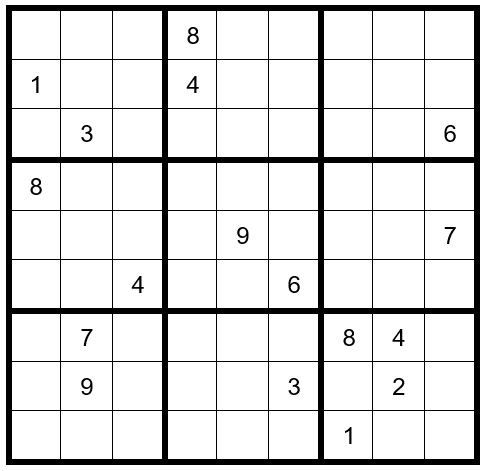 As a reminder, the basic rules of Sudoku are that the numbers 1-9 must be contained and cannot be repeated in a row, column, or box, and there can only be one solution to the puzzle.