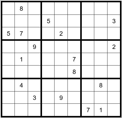 - Look for just 2 unsolved cells in a row that contain the same option where these 2 cells are not in the same box.