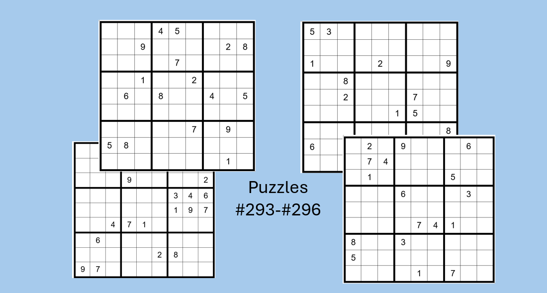 Here are links to all past Sudoku Puzzle Challenge beginning: February 2016, March 2016, April 2016, May 2016, June 2016, July 2016, August 2016, September 2016, October 2016, November 2016, December 2016, January 2017, February 2017, March 2017, April 2017, May 2017, June 2017, July 2017, August 2017, September 2017, October 2017, November 2017, December 2017, January 2018, February 2018, March 2018, April 2018, May 2018, June 2018, July 2018, August 2018, September 2018, October 2018, November 2018, December 2018, January 2019, February 2019, March 2019, April 2019, May 2019, June 2019, July 2019, August 2019, September 2019, October 2019, November 2019, December 2019, January 2020, February 2020, April 2020, May 2020, June 2020 and July 2020, August 2020, September 2020, October 2020, November 2020 and December 2020, January 2021, February 2021, March 2021, April 2021, May 2021, June 2021, July 2021 , August 2021, September 2021 , October 2021, November 2021, December 2021, January 2022, February 2022, March 2022, April 2022 , May 2022, June 2022, July 2022 , August 2022, September 2022, October 2022, November 2022, December 2022, January 2023, February 2023, March 2023, April 2023, May 2023, June 2023, July 2023, August 2023, September 2023, October 2023, November 2023, December 2023 and January 2024, February 2024, March 2024, April 2024, May 2024, June 2024, July 2024, August, 2024, September 2024, October 2024, November 2024, December 2024 January, 2025, February 2025, March 2025, April 2025, May 2025, June 2025, July 2025, August 2025, September 2025, October 2025, November 2025, December 2025, January 2026, February 2026 and March 2024.
