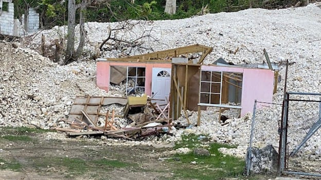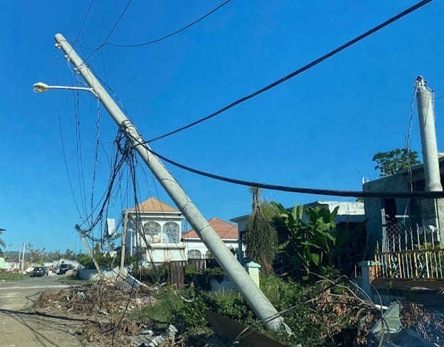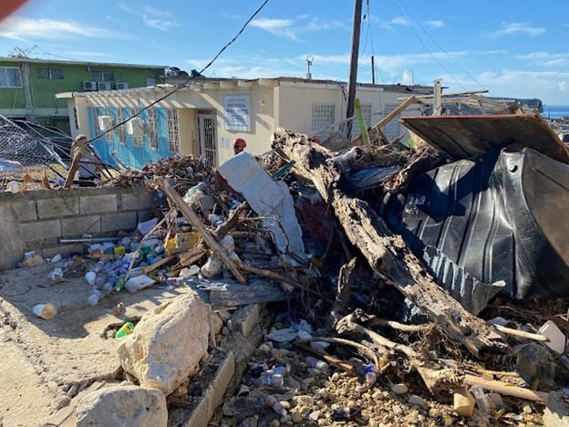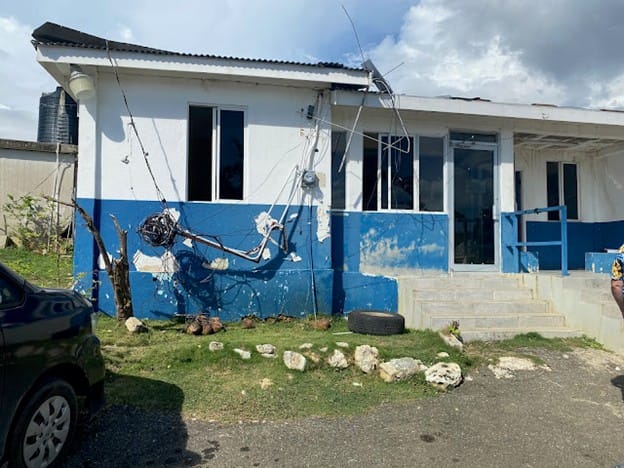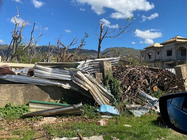 Most homes are small, poorly built with unfinished cinder block, yards full of debris. And that was before the storm. Finding specific locations is hampered by the fact that few homes have posted addresses. Power lines are strewn all over the place, so huge parts of the country have no power. When it gets dark, no lights, no TV, no AC, no refrigeration. If you don't have a generator (most don't) you are out of luck. I only saw marginal interest on the part of citizens to clean up much. Still, they are a very friendly lot.