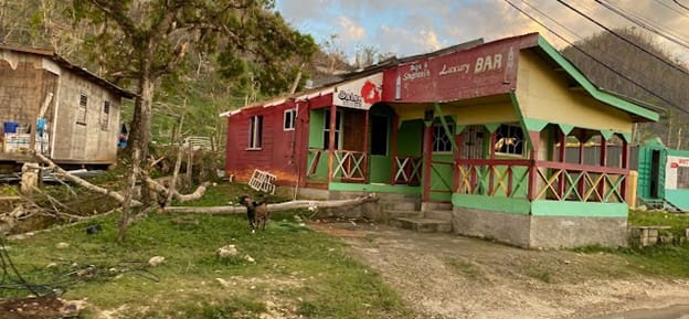 We landed in Montego Bay and drove to Whitehouse, ground zero, where the eye of the hurricane hit. A distance of 37 miles, which normally is an hour drive, took us 3 1/2 hours. This is what we classify as people in the "High social vulnerability index." Read "dirt poor." The hurricane may have done a number on them, but life here reminds me of a cross between Mexico and Morocco with rutted, impassible roads, with potholes every 100 feet that are big enough to swallow your car. Once away from the city, you are quickly in a 3rd world country.