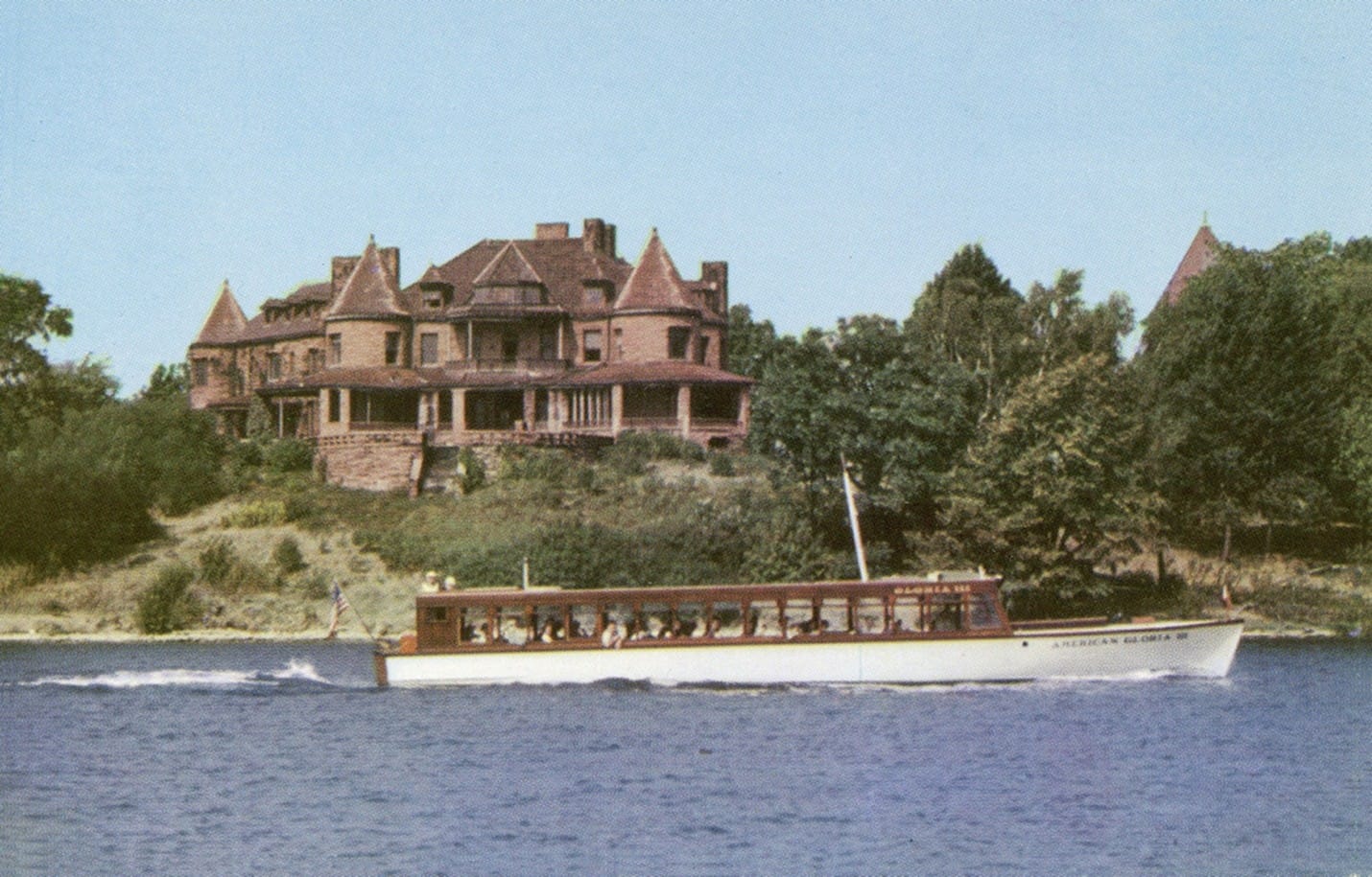 The American Boat Line came into existence sometime around 1944 when William Lantier renamed his 1000 Island Yacht Line with the more patriotic name during the final years of World War II. William married his second wife, the former Margaret McCormick, widow of Everett McCormick, in 1946, and she took an active interest in the operation of the business. She also wrote a booklet about the Thousand Islands and the highlights of the tour, which was available for tour boat customers to buy.
