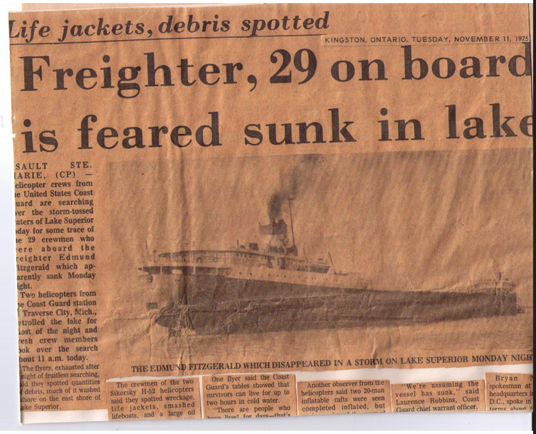 By mid-morning, one particular story was making headlines. A fully loaded ore carrier was reported missing up on Lake Superior. By day’s end it was almost certain that the SS Edmund Fitzgerald with all 29 of her crew had perished in the storm.