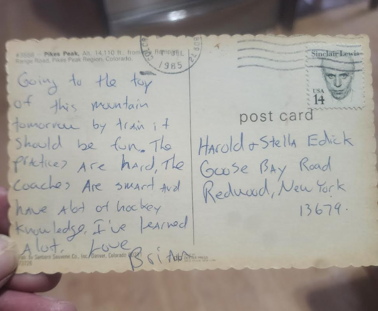 Two family postcards sent by the author to his family in 1985.
