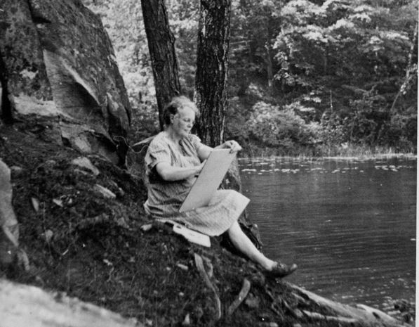 Upon her arrival she was told they would be lumbering behind the woods near her cottage. Horrified, she offered the Association a proposition. In exchange for lumbering elsewhere, she would make and maintain a nature trail that followed the old Native American path in the woods. In August 1934, at the annual meeting of the TI Park Garden Club, Minna asked if they would sponsor this nature trail. Awarded $10 and the promise of help for any heavy lifting, Minna and her children set about their work. In August 1935, the Rock Ridges Nature Trail opened. A mile and a half long, it included a water garden made in the reservoir for TI Park.