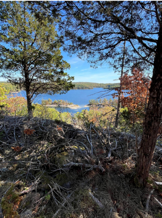 Schweitzer’s enthusiasm for the project is echoed throughout the Land Trust, from the Board of Directors who champion its protection to the biologists who study the land. TIWLT Head Wildlife Biologist Maggie Stevenson, identified many of the interesting and at-risk species on the property, noting their significance. The Red Horse Highlands encompass 360 acres [146 hectares] of quintessential Frontenac Arch terrain - a dramatic landscape of pink granite ridges and valleys, elevated wetlands, mixed forests, and striking cliff-top vistas. This ecologically rich mosaic provides critical habitat for numerous species at risk.
