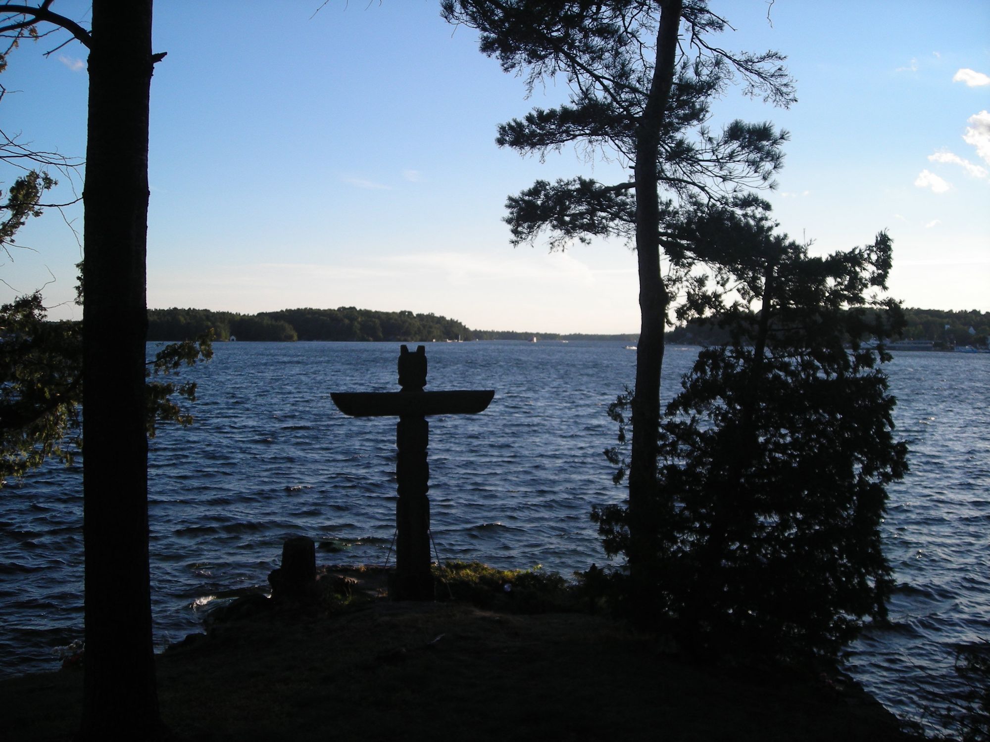 The totem poles of Tar Island were brought here by settlers and cottagers. Indigenous people indeed were in the Thousand Island area in the past. Many cottagers on Tar and Grenadier Islands have an arrowhead or two on the mantelpiece; at least one cottage has a bucket full of arrowheads. Some Indigenous artifacts were sent from Tar and Grenadier Islands to a museum in New York City.