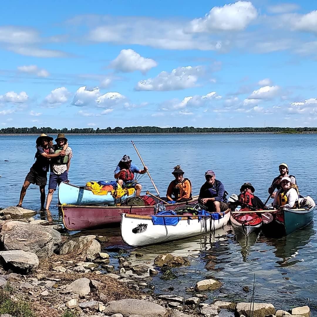 On the morning of August 22nd, I was getting super excited. My husband calls me the "camp counselor", as I love meeting new people and helping them out. My girlfriend on Downie Island also was keeping an eye out for them. I was expecting two canoes . . . but she texted me and said she saw four canoes and a kayak (9 people altogether) coming downbound. I laughed as I waved them in, as I’d never asked how many canoes there would be or how many people to expect. That just wasn't important, I guess!!