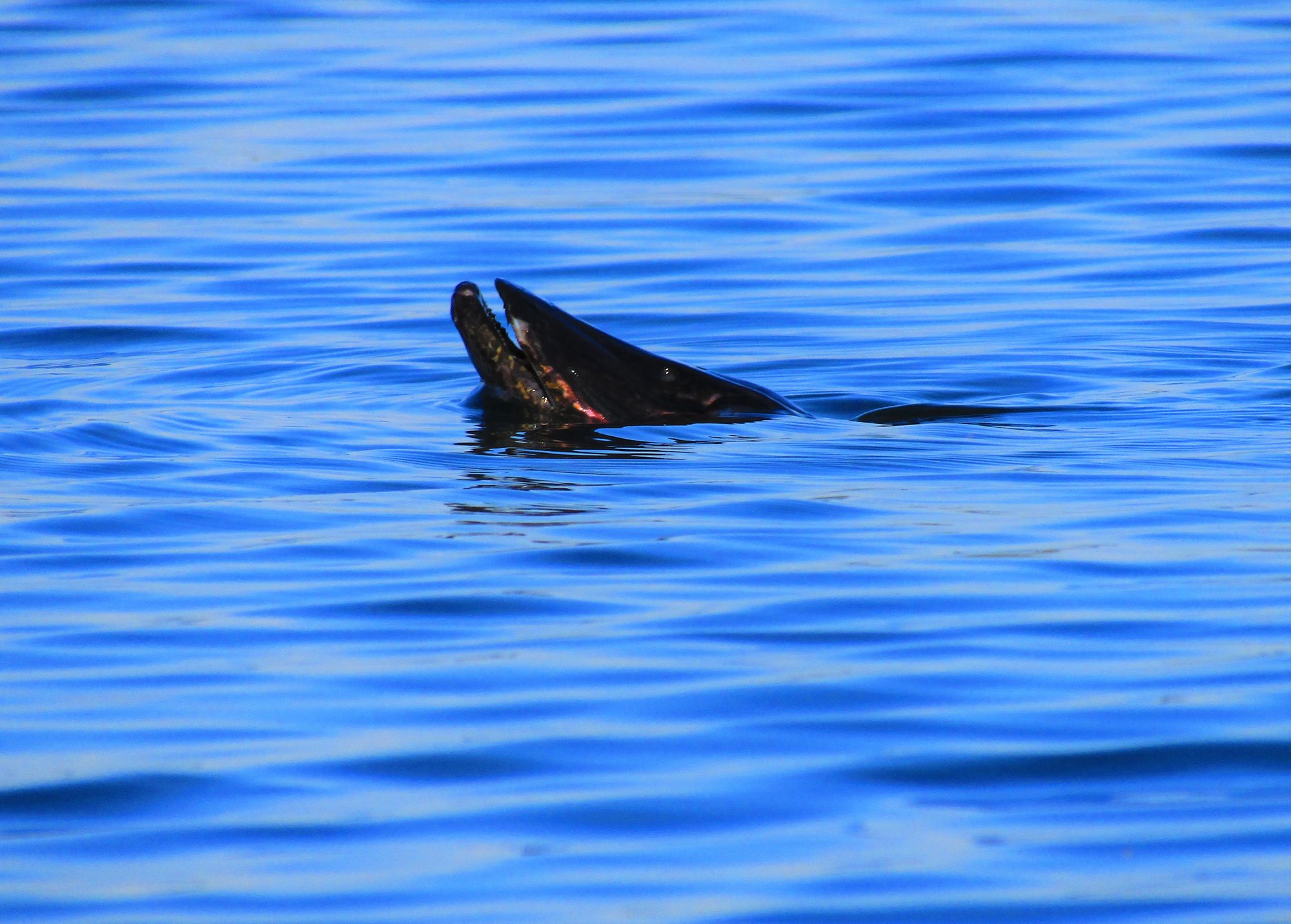 It was one of those mornings, when the water was like glass, and I was out just after sunrise heading to one of my favorite secret spots. I was happily paddling toward my destination when I saw something ahead of me in the water. At first, I thought it was a log or some kind of floating debris. But as I got closer, I saw it move. The “thing” suddenly and intentionally dipped below the surface. It was alive! My next thought was that it might be a mink or a beaver. I paddled closer. What resurfaced was clearly a head. A giant fish head. I stopped paddling and reminded myself that to date there have been no known shark sightings on the River.
