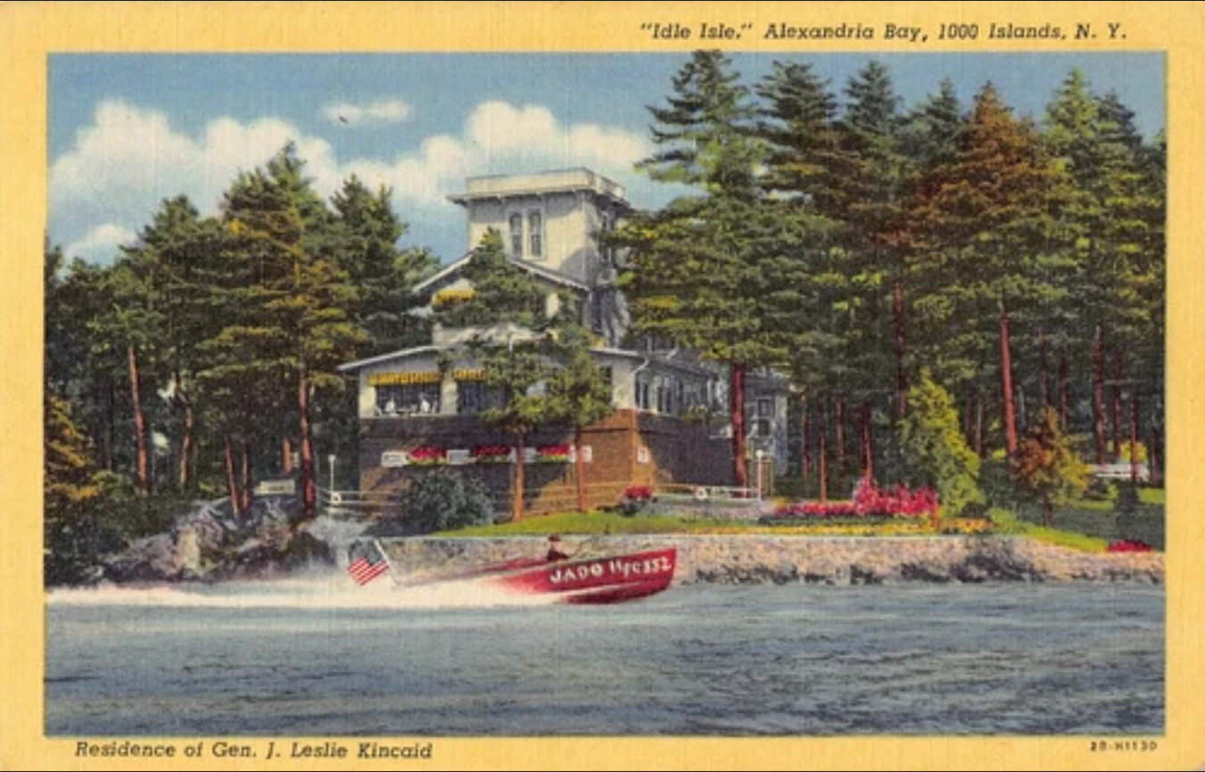Among the islands that tighten the River’s narrows is Idle Isle, once known as Rose Island, it was purchased in 1922 by General Kincaid, whose political influence helped establish Pine Camp in Jefferson County, the military site that would later become Fort Drum. His stewardship of Idle Isle is an integral part of the island’s quiet lore.