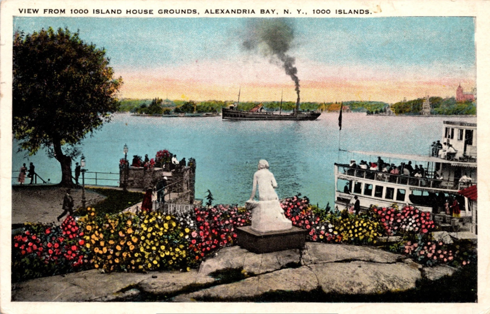 Postcards have long been the River’s unofficial archive, protecting the sharp edges that memory softens over time. A century’s worth of travelers have frozen their astonishment in carefully written cursive on the backs of beautiful linen cards: “View of Alexandria Bay,” “Sunset from Benson’s Rift,” “Idle Isle, Residence of Gen. J. Leslie Kincaid.” These fragments of a hundred summers now sit in cardboard boxes, lay in family chests, or are on display in antique shops, each one a quiet witness to someone’s first encounter with wonder.